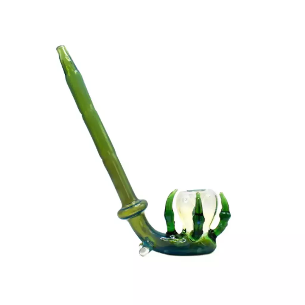 Sumergite en un ritual de estilo y originalidad con esta pipa de vidrio con forma de garra. Su diseño imponente simula un artefacto chamánico, ideal para quienes buscan una experiencia distinta y visualmente impactante.